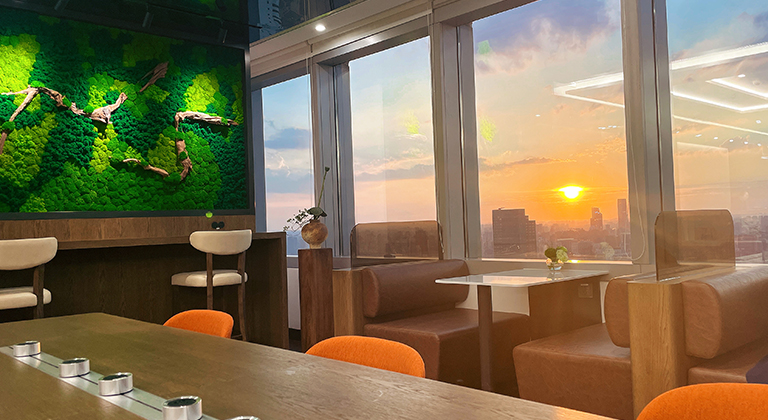 除了创新自助吧台,上海中信泰富广场中心也巧妙地将落地窗区域改造为灵活共享的工位区。这里配备了移动插座、人体工学沙发与舒适座椅,为会员提供了一个既便于协作又充满个人化的工作空间。在这里,会员不仅可以享受到高效便捷的办公环境,更能在忙碌之余,透过落地窗欣赏到 42 层独有的夕阳美景,让心灵得到片刻的放松与愉悦,营造出一种无与伦比的工作享受。