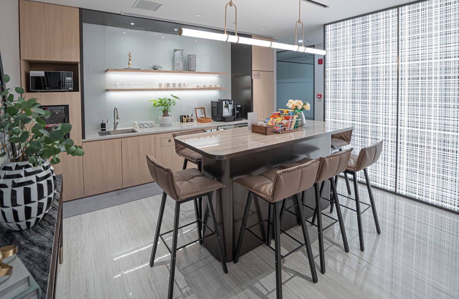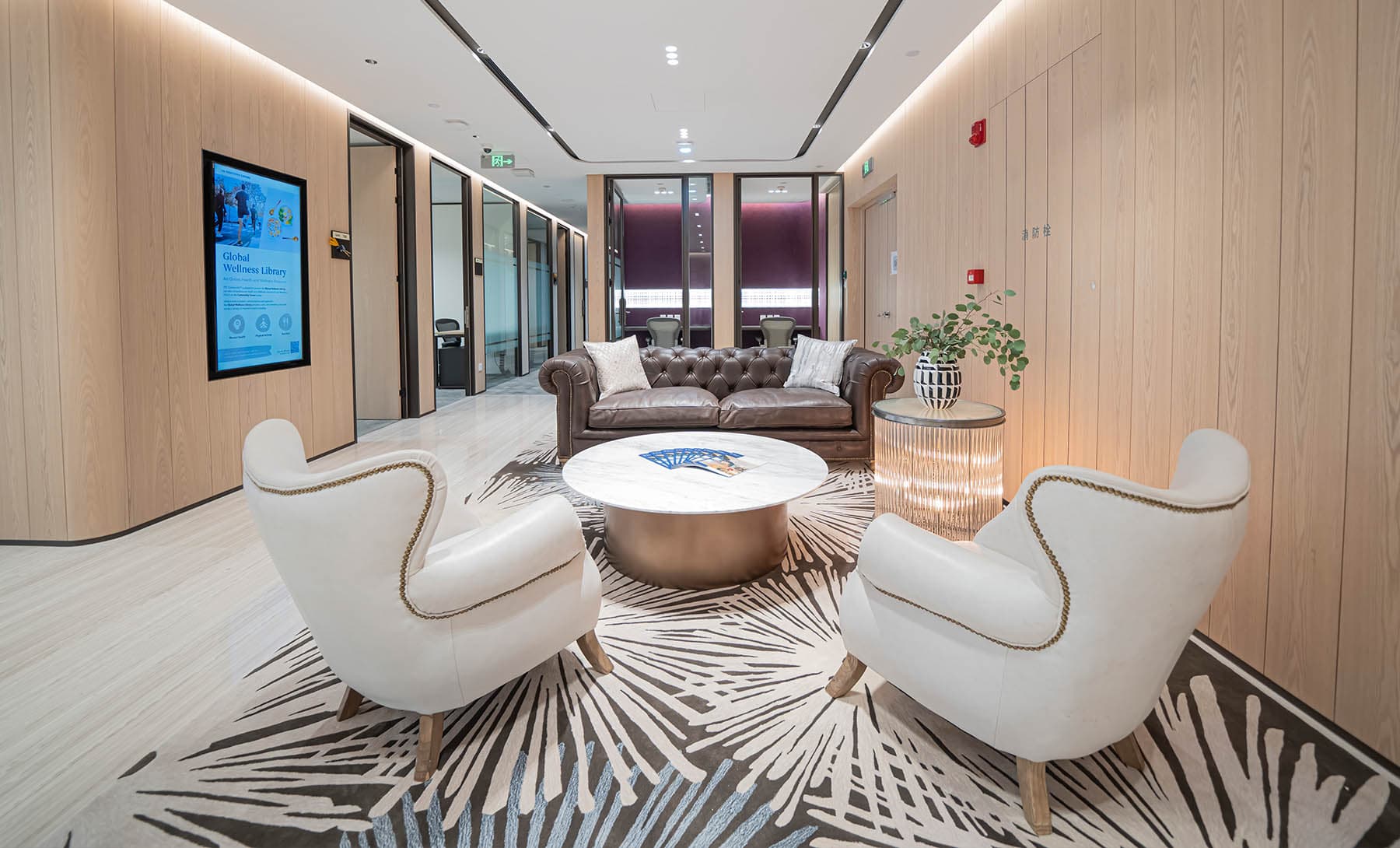 我们的办公中心在成都环贸广场 1 号大楼的七楼。为了创造一个更舒适、专业和独特的中心,我们在室内的设计加了一点心思,并将当地繁华文化和现代艺术品结合为一而展现出来。
