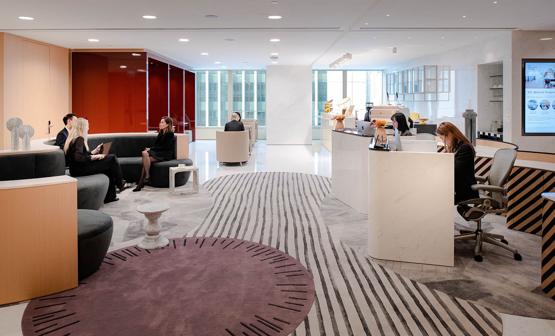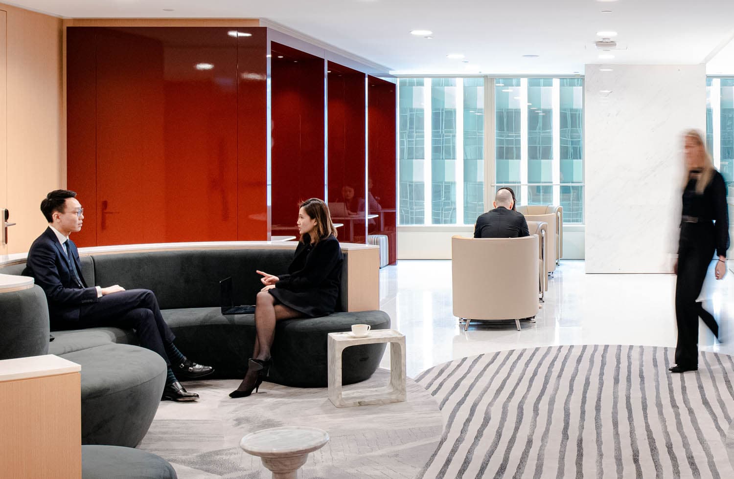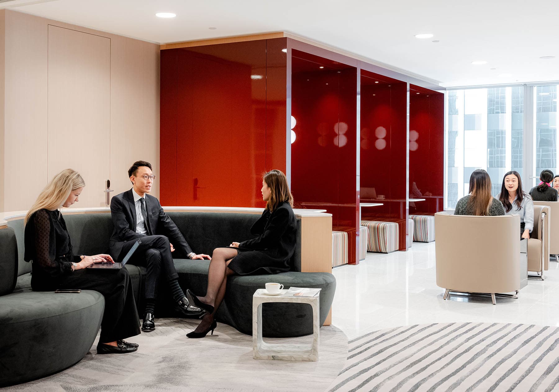国金一期现代化的室内设计创造了一个安宁而又先进的工作环境。