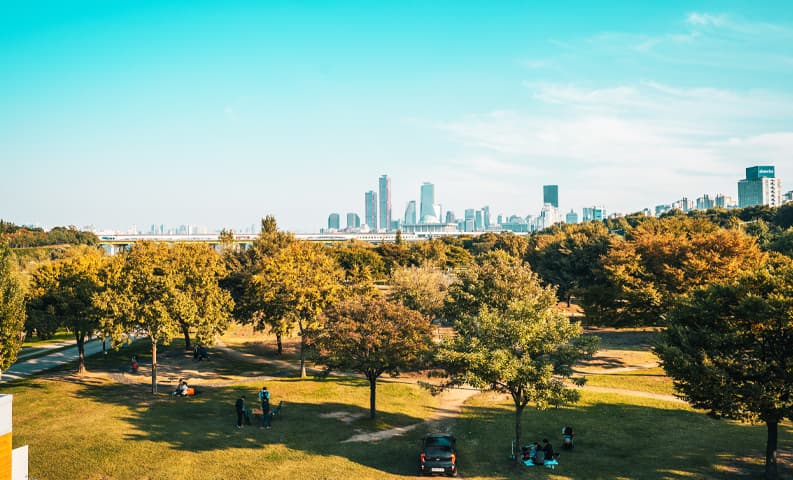 Within 5 minutes of walking distance, you can find the luxury hotels such as Conrad Seoul and the Fairmont. Upscale retail plazas such as the IFC mall and the Hyundai Seoul department store. Green spaces such as Yeouido Park and Hangang Park.